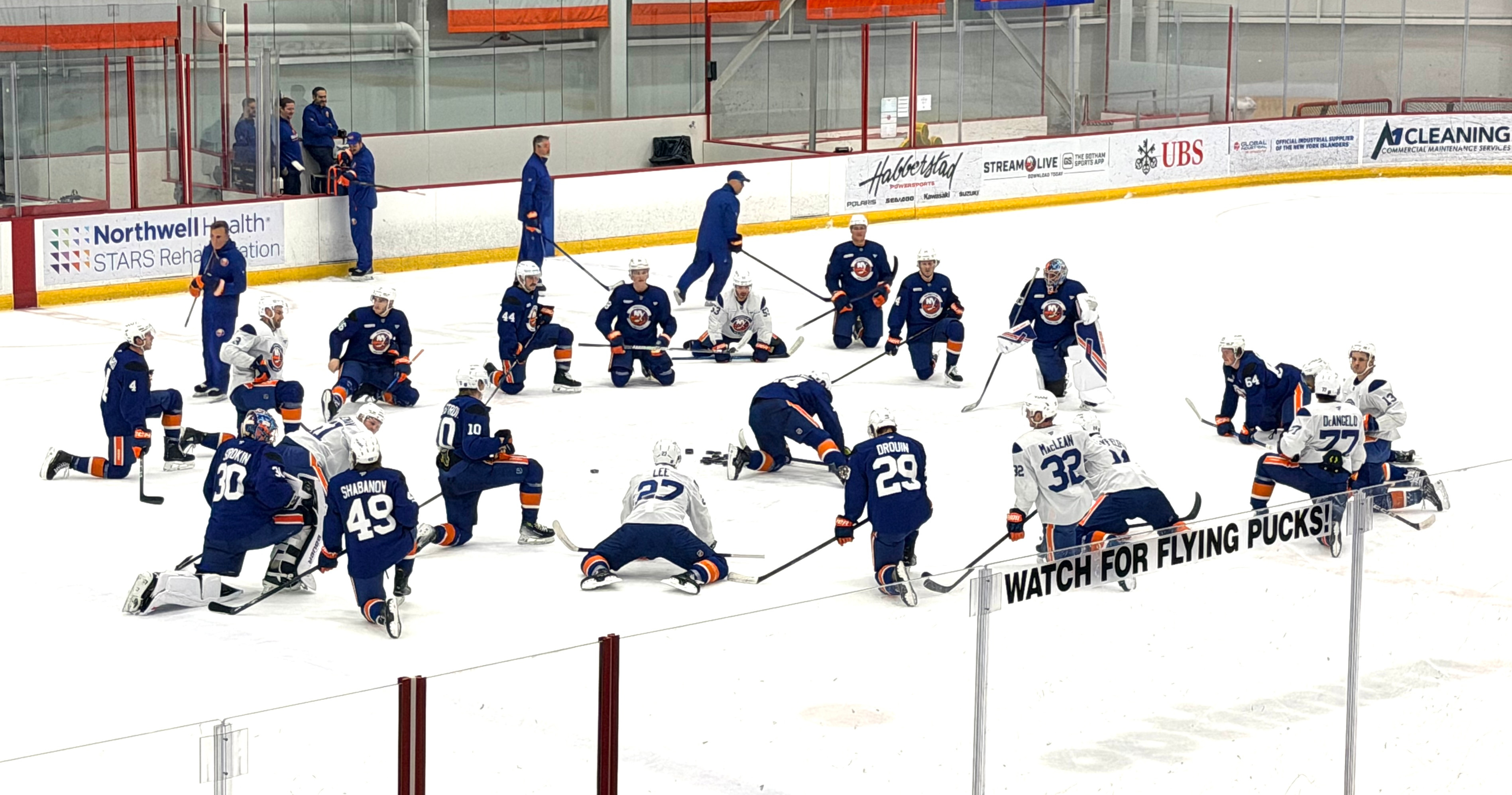 Horvat: “No, no. He’s too lazy to do that anyway. He’s too high up. He was walking around the rink every once in a while, but no. Troy [Stevens] and Seids [Seidenberg] and those guys did a great job of keeping me in shape — even the treatment guys and the guys in the gym. I’m feeling good and ready to go.”