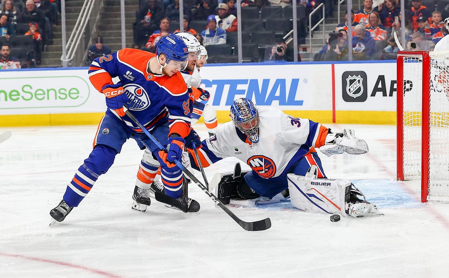 Sorokin talked postgame about “luck” being on his side in a 1-0 shutout win — you would have to agree — after Leon Draisaitl hit the far-side post on a wide-open net in the dying seconds of the third with Connor Ingram on the bench for the 6-on-5 advantage. You've got to be lucky to be good.