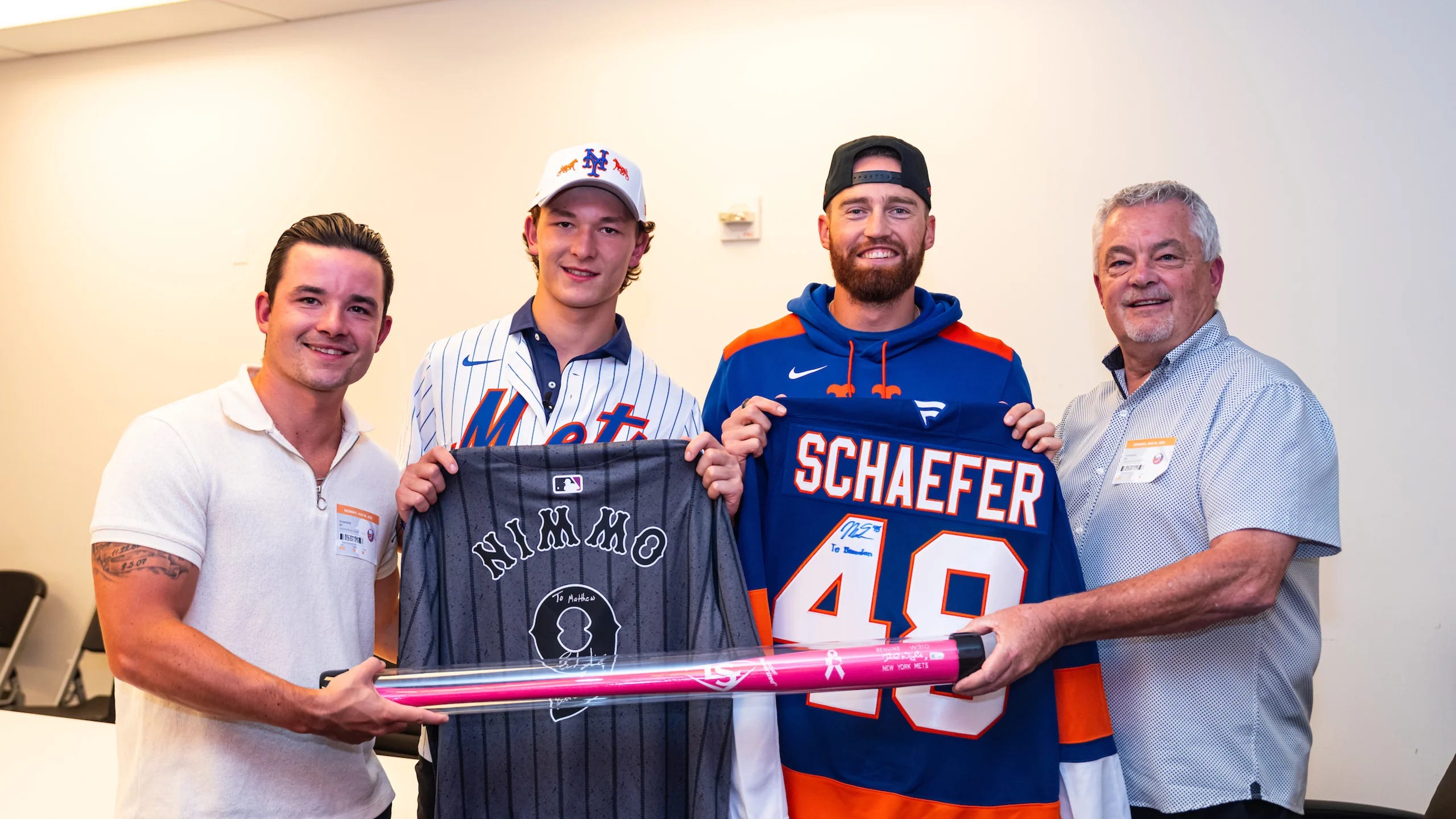 When Schaefer signed his entry-level deal in early August, he went to the New York Mets game, throwing out the first pitch and staying for a little bit. Before the game, the Islanders had him meet Brandon Nimmo, who gave him a jersey and a lavender Breast Cancer Awareness bat.