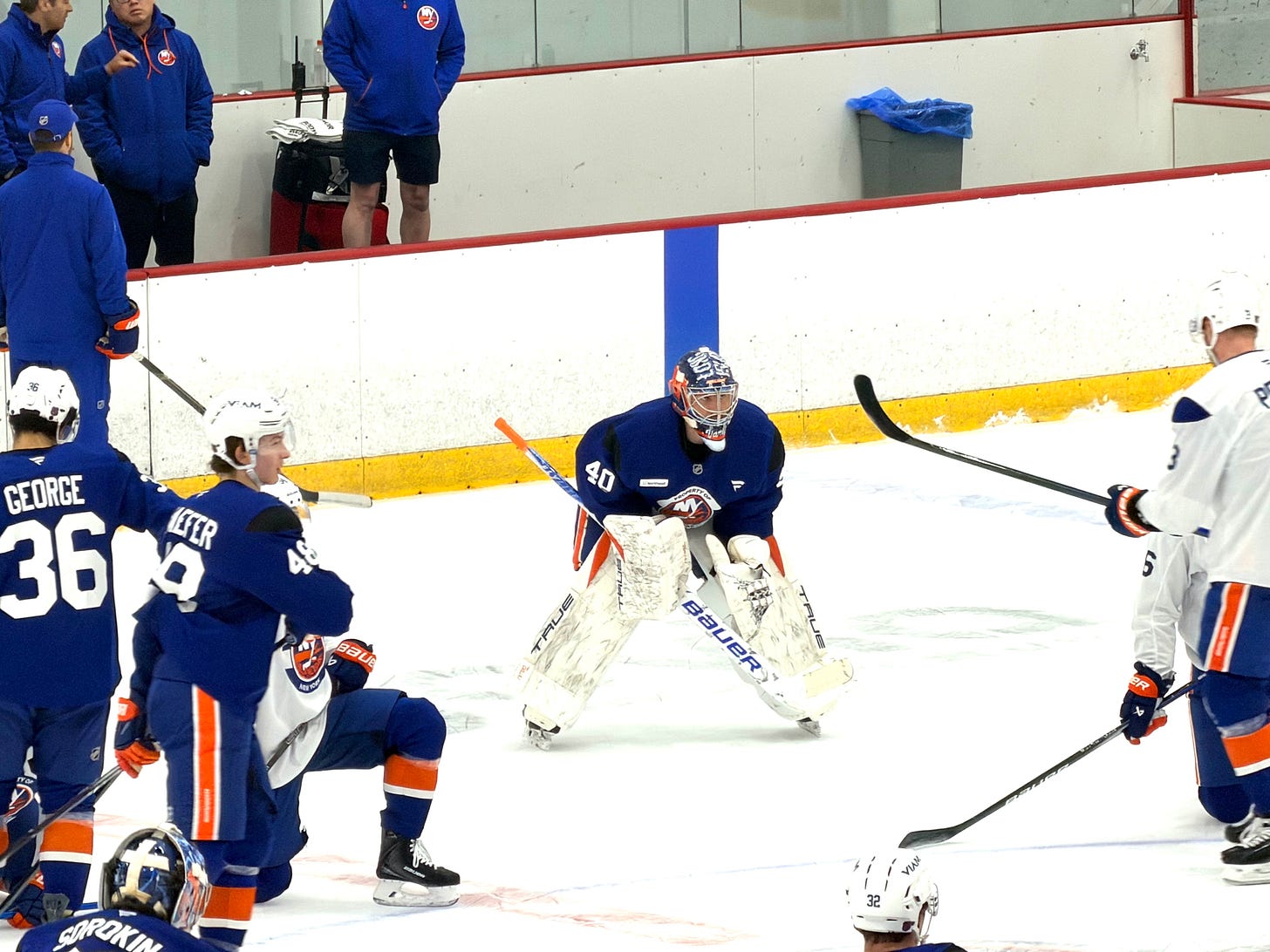When we first saw him early in the recovery, he was working on the basics with goaltending coach Sergei Naumovs. There wasn’t much lateral movement being done, more skating, going in and out of butterfly, things like that.