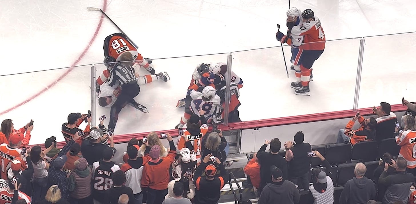 After Detroit Red Wings forward Mason Appleton went after Schaefer in the dying seconds of the Islanders’ 7–2 rout on Thursday, the Philadelphia Flyers collectively followed suit in what was ultimately a 4–3 shootout loss for Long Island.