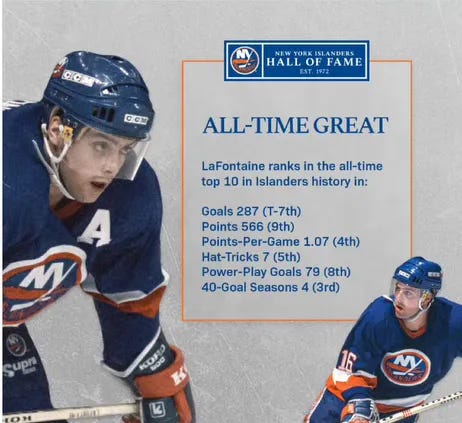 LaFontaine was so very special that he is one of the precious few who earned a chapter in Glenn Liebman’s book “Hockey Shorts,” which featured thumbnail sketches of superstars as well as critical comments.