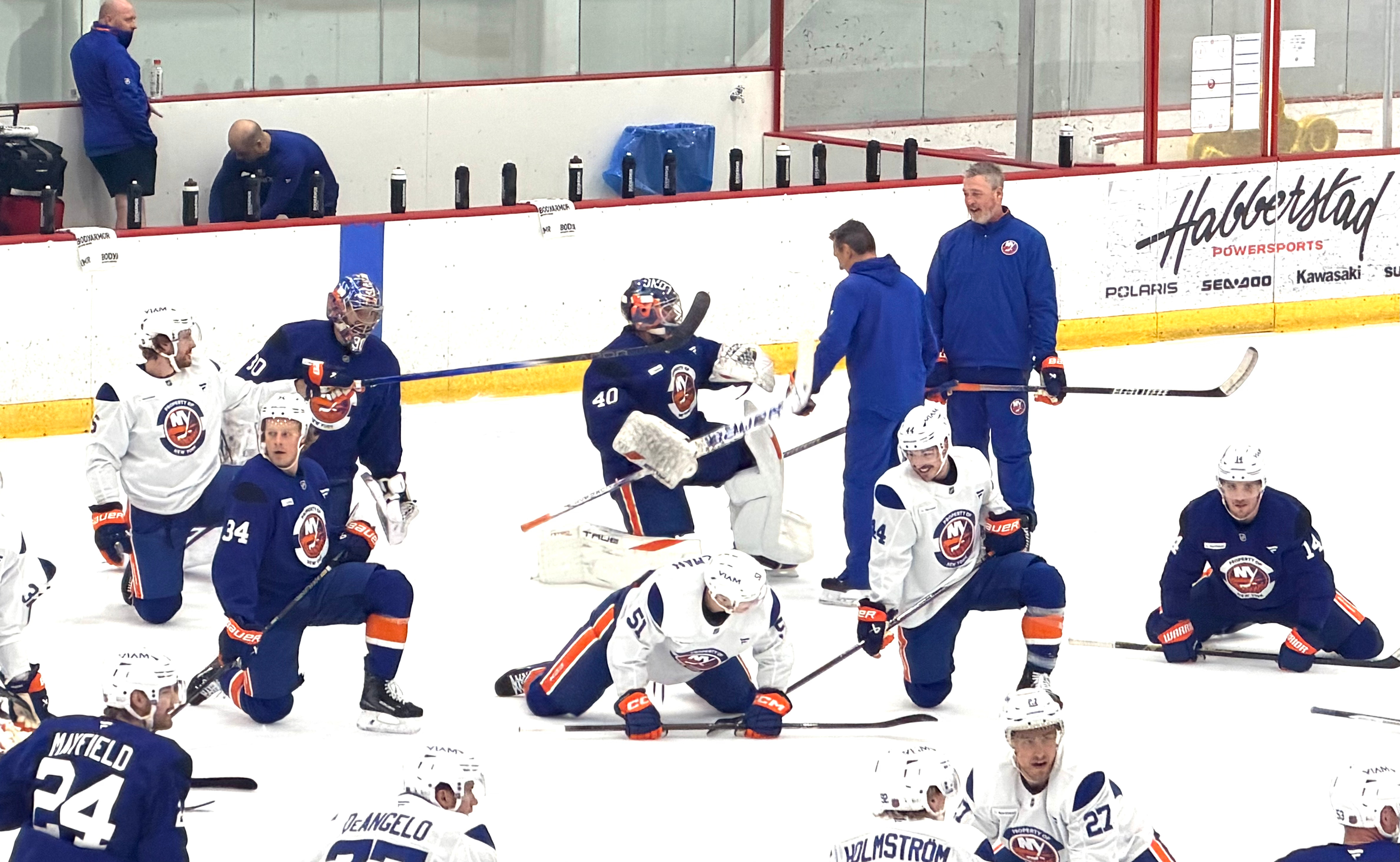 EAST MEADOW, NY — Veteran goaltender Semyon Varlamov rejoined the New York Islanders at the end of Monday’s practice as he continues to work his way back from double-knee replacement.
